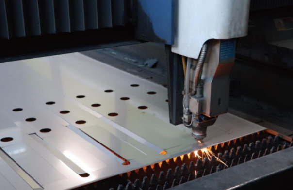 CNC 절단기로 원판을 자르고, 표면 손상을 막기 위한 1차 보호 필름을 양면에 부착합니다.